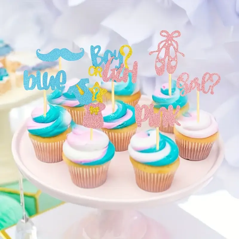 16 Pièces – Toppers Cupcakes Nœuds Papillon pour Révélation du Genre