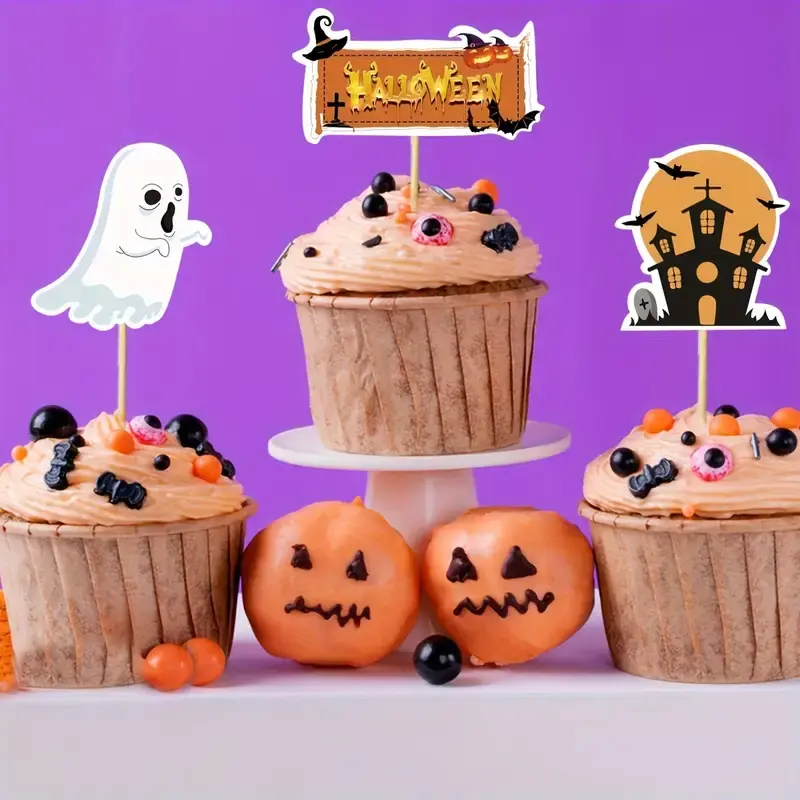 8 Toppers de Cupcakes Halloween – Citrouille, Chat, Œil Magique pour Fête d'Hal